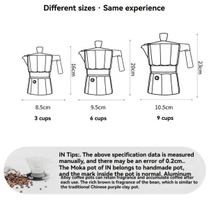 Enjoy the timeless ritual of stovetop brewing with this manual moka pot espresso maker, crafted for strong, aromatic coffee every time. Designed to make 3 or 6 cups, it’s the perfect size for personal mornings, family breakfasts, or sharing with friends.